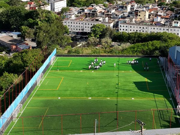 temos três quadras de futebol society já finalizada, disponível para uso dos jovens.